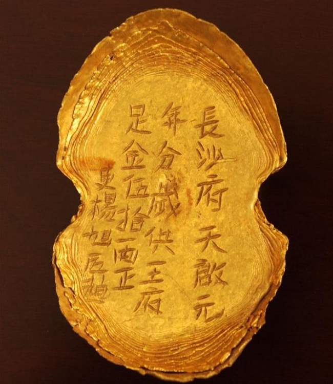 Χαρακτηριστική κινεζική ράβδος χρυσού και κάτω μια ράβδος αργύρου.