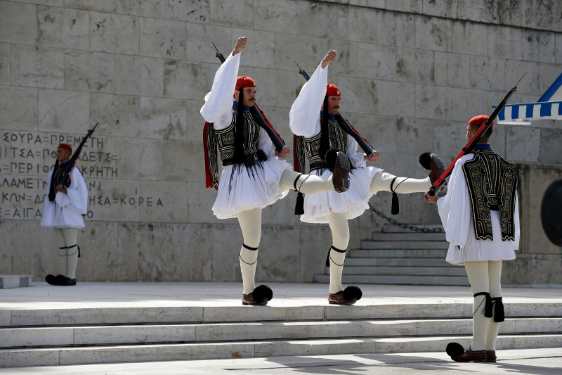 Οι Εύζωνες στέκονται και φρουρούν το Μνημείο του Άγνωστου Στρατιώτη και την κατοικία του αρχηγού του ελληνικού κράτους, όρθιοι και ακίνητοι για ώρες, μέχρι τη στιγμή που θα αλλάξουν βάρδια με άλλους στρατιώτες.