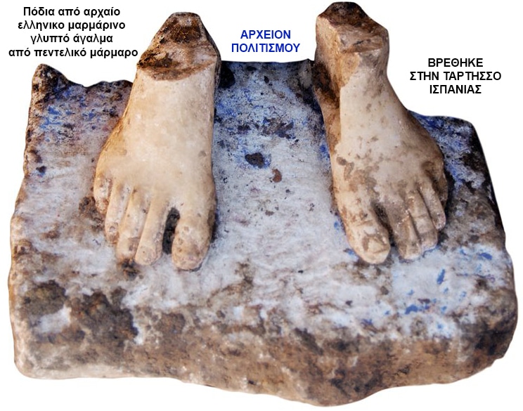 ΤΩΡΑ, ένα ακόμη θραύσμα μαρμάρινης στήλης / πόδι, που χρονολογείται στον 5ο αιώνα π.Χ., ανακαλύφθηκε στο Turuñuelo και, πιστεύεται ότι αποτελεί μέρος του αρχαιότερου – έως τώρα – ελληνικού βωμού, που έχει βρεθεί ποτέ στην δυτική Μεσόγειο! Έχει βάση 60 εκατ. και σχήμα κίονα. – Ίσως να πρόκειται και για πόδι λουτηρίου.
